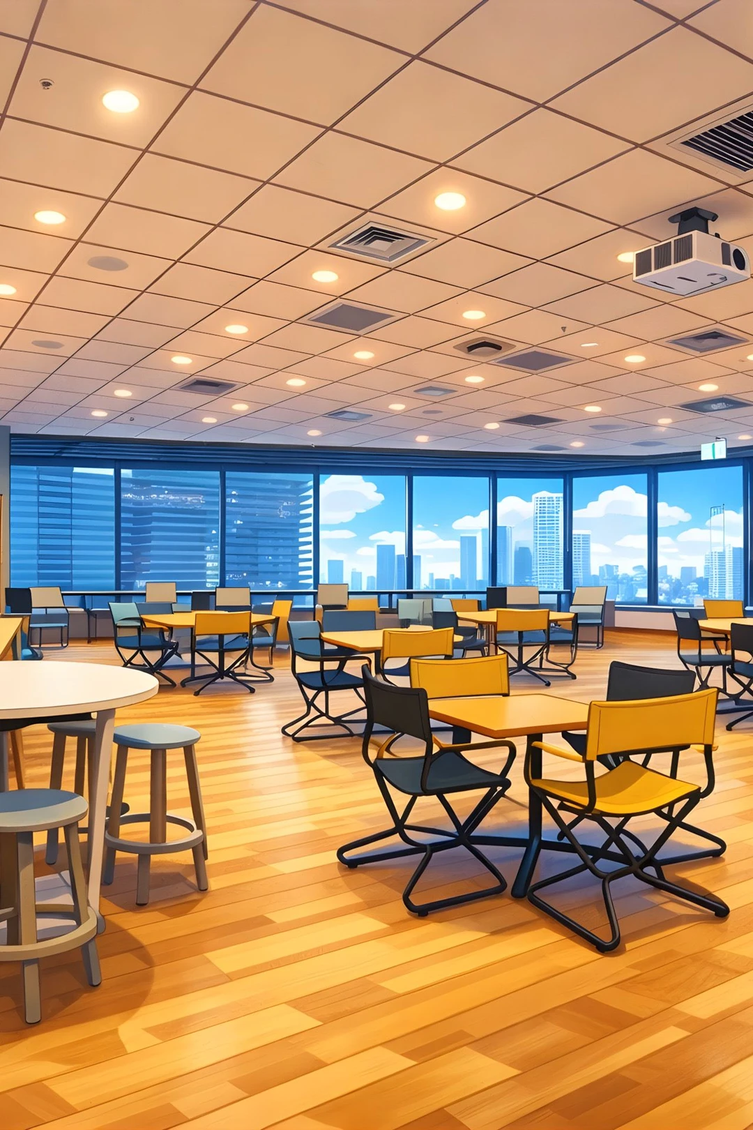 あなたはホロライブ新社屋の高層ビルの中、広いリラクゼーションルームの椅子に座り、見晴らしの良い窓の外を眺めてくつろいでいる。