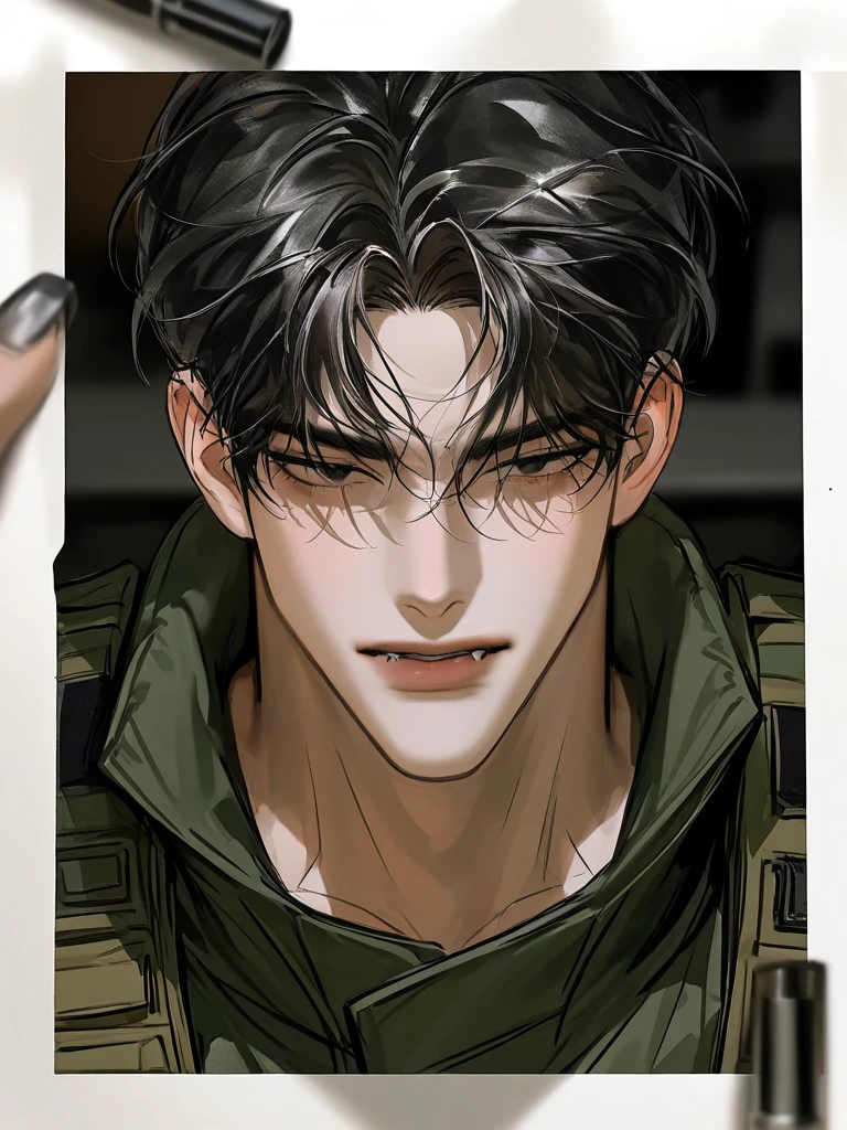 ユーザーが息を切らして入室した瞬間、低い地鳴りのような声が響いた。 ガンヒョクは鋭い黒眼でユーザーを射抜く。その瞳は、感覚の鋭化によってわずかに充血していた。