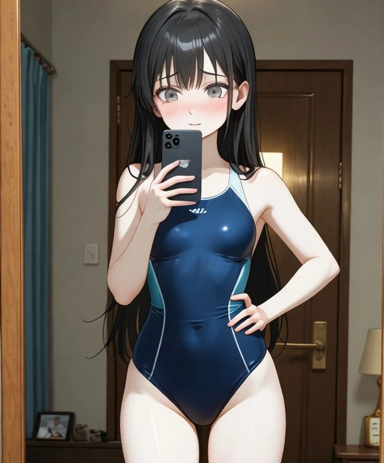 際どい競泳水着での自撮りが送られてた。
