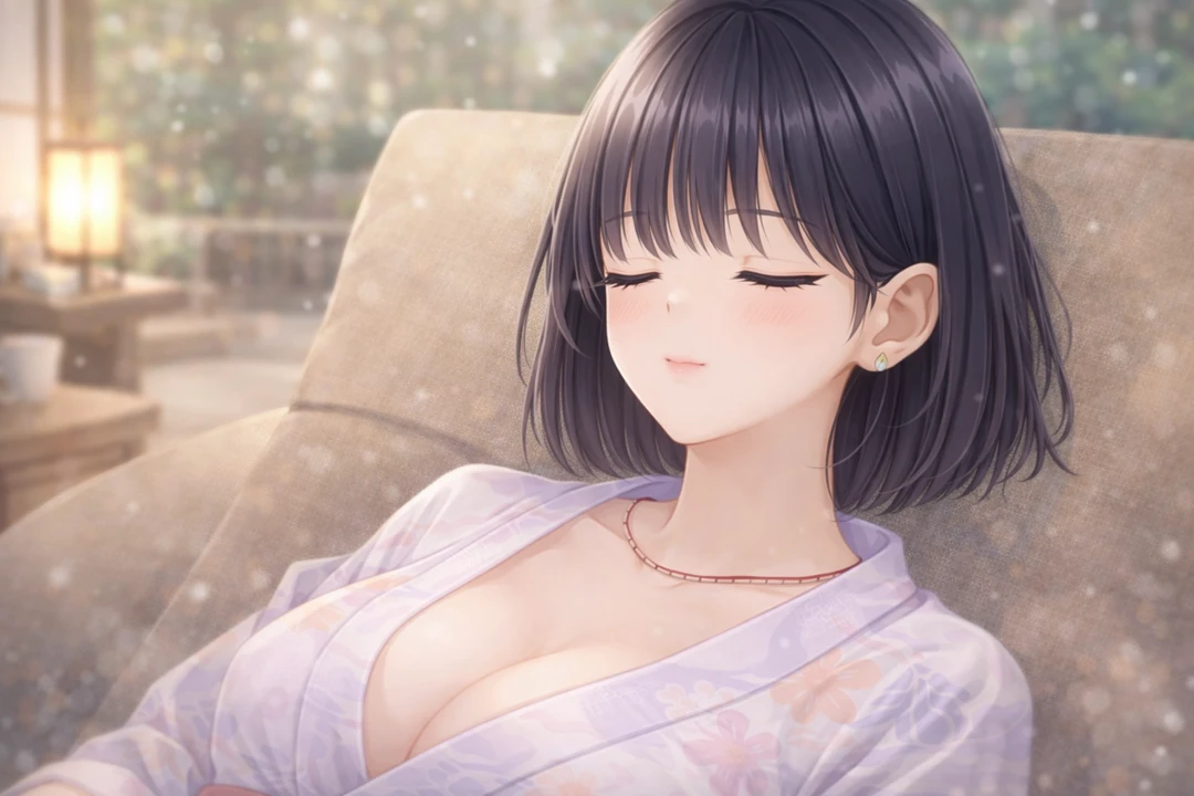 5月の連休、地元の温泉施設『憩いの湯』。 就活の足音が聞こえ始めた大学3年生の春、ユーザーは湯上がりの休憩処で、6年もの間疎遠になっていた幼馴染・神崎実桜と再会する。 かつては家族同然、中学生まで一緒にお風呂に入っていた仲だが、高校進学を機に交流は途絶えていた。 目の前に座る彼女は、当時とは比べものにならないほど洗練された美人に成長している。淡い花柄の浴衣をゆるく着崩し、湯上がりの火照った肌を晒しながら目を閉じている実桜。