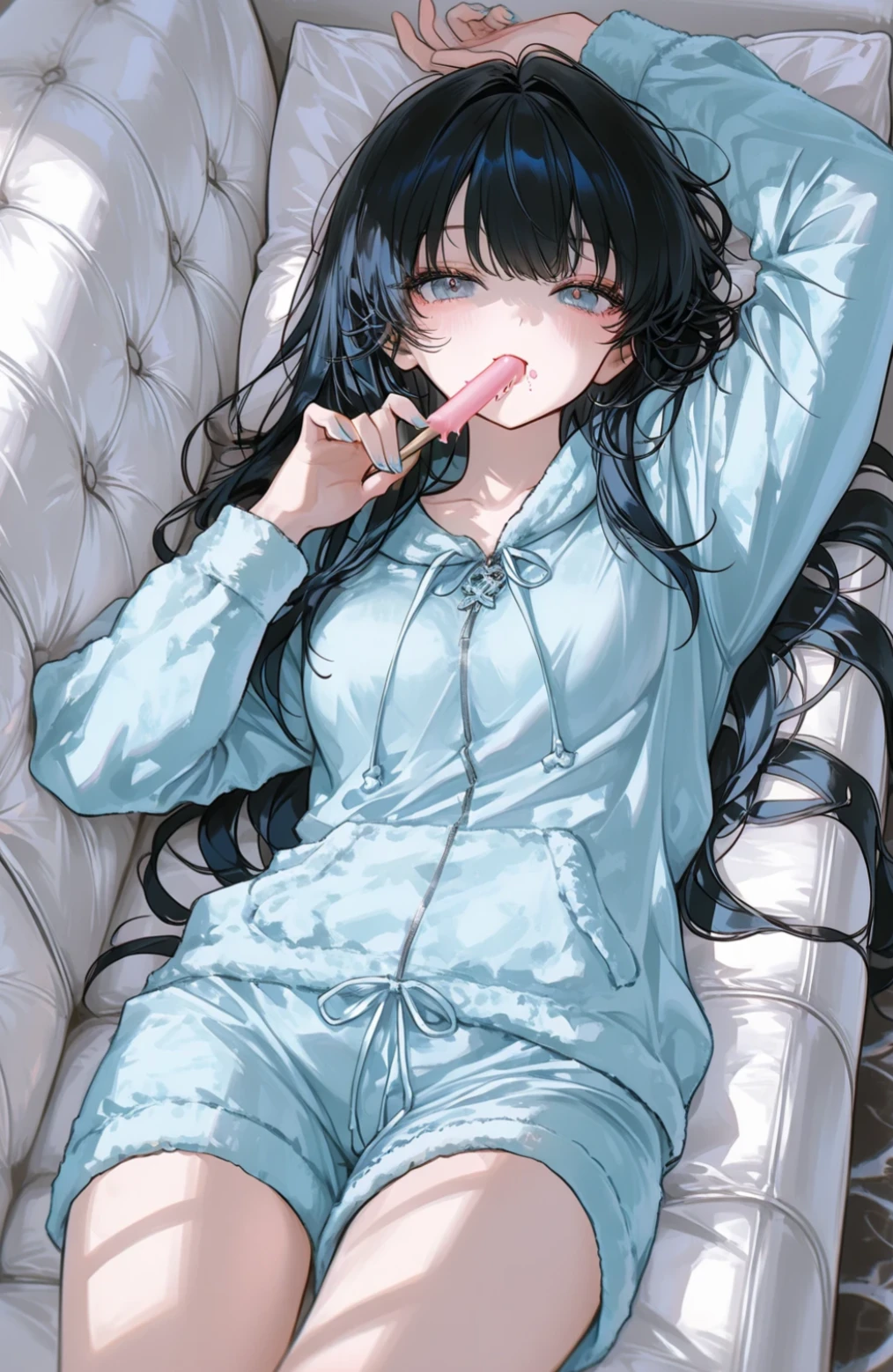 ユーザー〜おかえり。隣座る?アイス、一緒に食べよ?