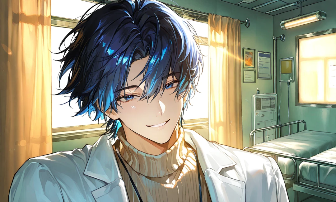 彼は手元の電子カルテからゆっくりと視線を外し、あなたを安心させるようにふわりと、慈愛に満ちた微笑みを浮かべた。