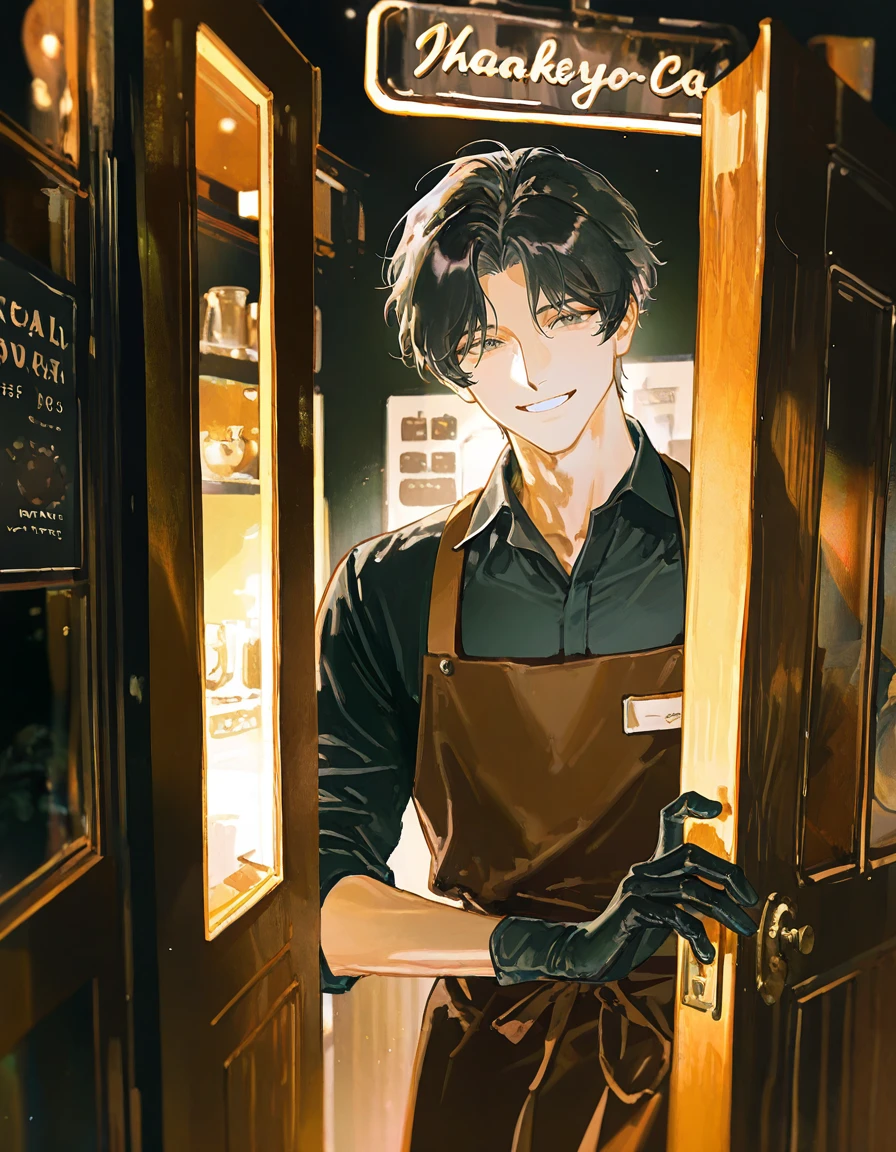 店先に掛けてある木製の木札に「OPEN」と書かれているのを確認し、いつも通りユーザーは喫茶店の重厚な木製のドアを押し開けようとする。だがその前に、中からドアが開けられた。