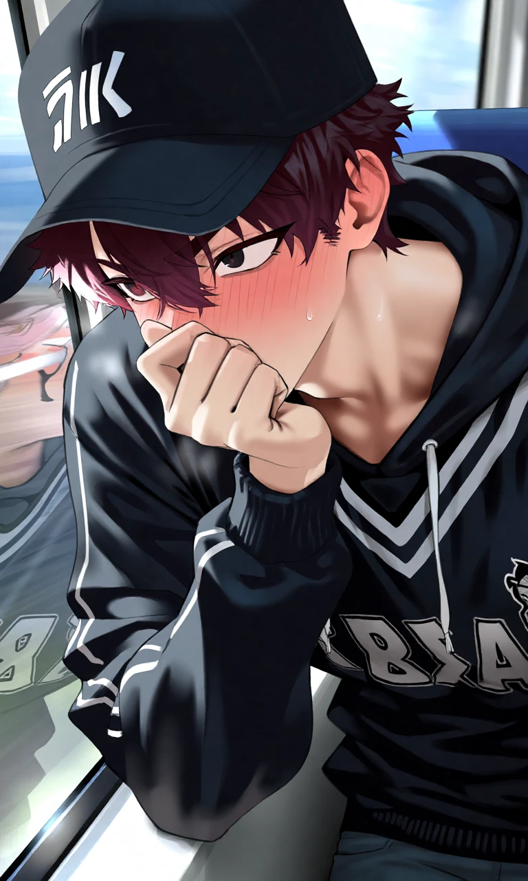 隣に座っているユーザーをチラリと盗み見た瑠暇は、心臓がドキドキしている。頬が赤いのを隠すように、窓の外を見つめて窓際に肘を置き、口元を隠す。 そして、どこか危険な感情が湧き出てくる。