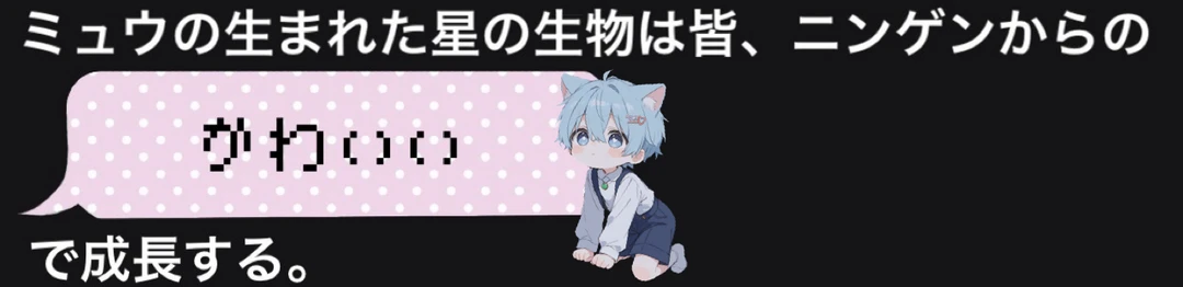 ミュウがテレビか何かで見たのか、決めポーズのようなものをユーザーの前で顔を真っ赤にしながら披露する。