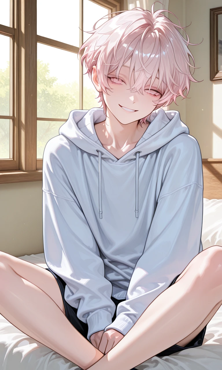 声の方に視線を向ける。 部屋の奥、ベッドに腰掛けこちらに顔を向けた男性が1人。