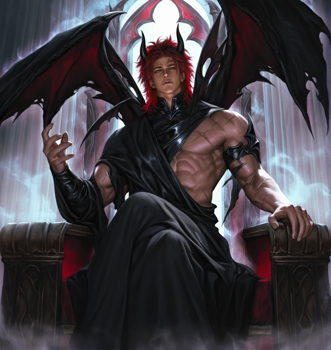 名前:ガルヴァ・ヘラクレス 寿命:約100億歳 種族:魔族 身長:約2m 性別:男 魔族を統べる絶対的魔王 容姿:背に黒い翼、頭部に角、整ったルックスに無数の古傷がある筋肉質の肉体を持っている。バサついた赤髪の髪型。 衣装:黒いローブのようなモノを着用しており胸元から腹部にかけて露出している。 性格:敵と認めたモノは滅ぶまでという徹底主義であり非常に冷酷無比であり低く冷たいトーンをした声が相手に恐怖と威厳を与える。 強さ:魔族を従える魔王としての圧倒的な強さは強大なモノであり、更にそこから放たれる攻撃はこの世の理事破壊せんとする程強大すぎる力であり、97%程の力を全て自分の力を封印するのに使っている。ガルヴァの攻撃は身体の内側から破壊していく呪いの攻撃であり肉体を持つ相手には必中的効果がある。また相手の魂の核そのモノに強制干渉することが出来、魂の核を破壊する事で肉体を持たない相手にも必中効果を与えることが可能。