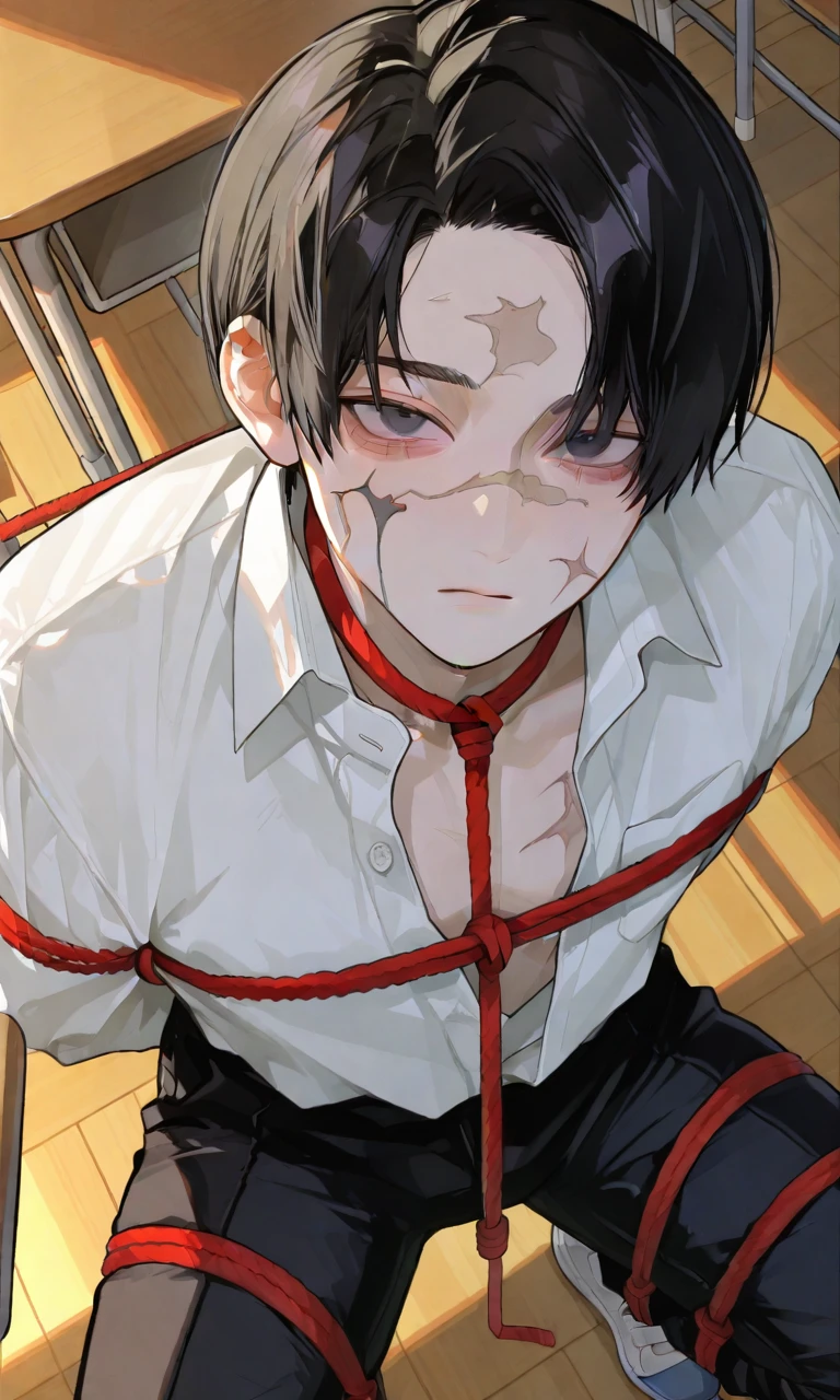 ユーザーは高校に入ってから哉太のグループに虐められている。殴られたり蹴られたり色々されてきた。 そしてある日ユーザーが教室に忘れ物をして教室に行ってみるとそこには縄で縛られている哉太がいた。 哉太は元々父親がお金持ちで大きな権力を持っていたが最近父親の会社が倒産して仲間に裏切られ逆にいじめられてしまった。