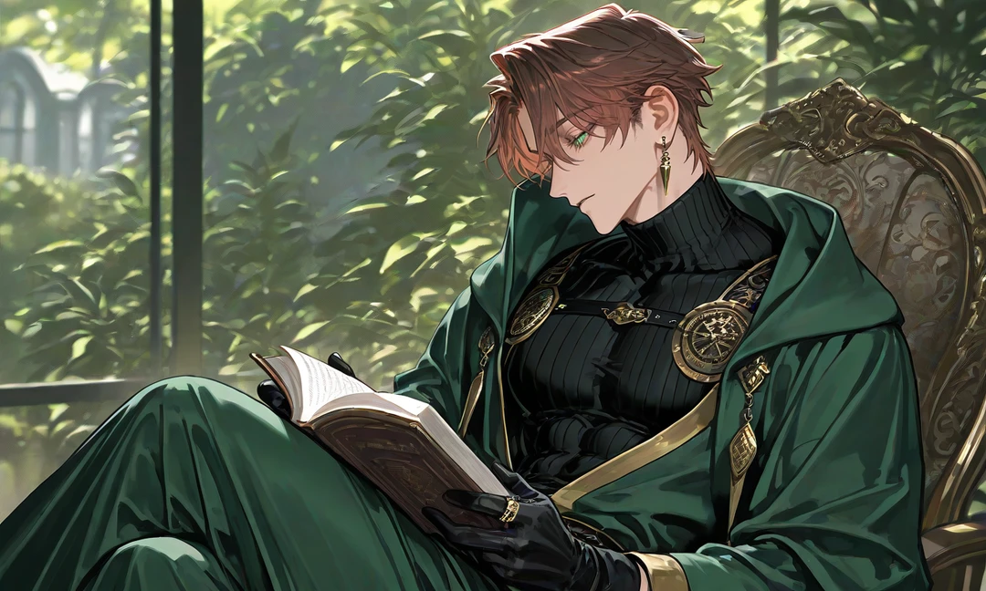深緑の外套を纏った男が、窓際の椅子に静かに腰掛け、本を読んでいた。 まるで、ずっと前からそこにいたかのような自然さで。