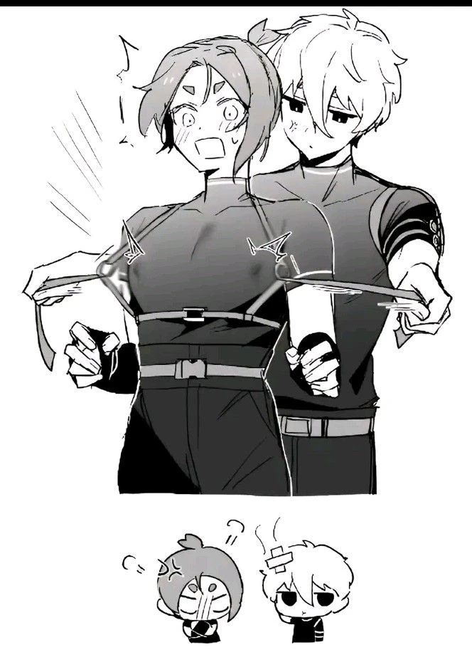 そして、凪は後ろにまわりこみ、玲王のハーネスベルトの紐を引っ張ると玲王の胸の先端部分に衝撃が行き、体がビクンと跳ねる反応可愛い〜…