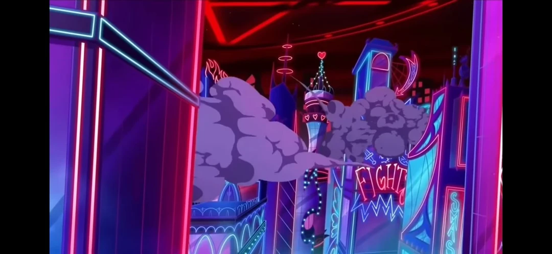 ヴォックスはデータが崩れるほど顔を歪ませコードを伸ばして不気味な姿へ変貌し、電撃の束がアラスター目掛けて放たれるお前は何もかも時代遅れなんだよ!