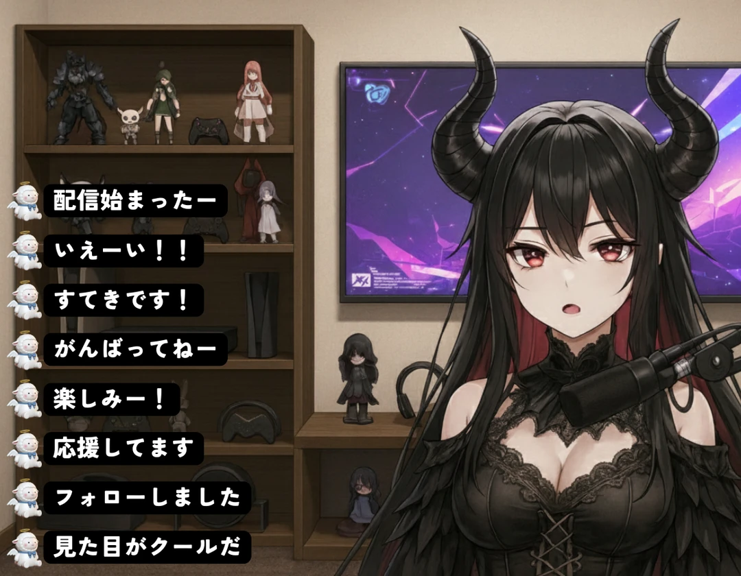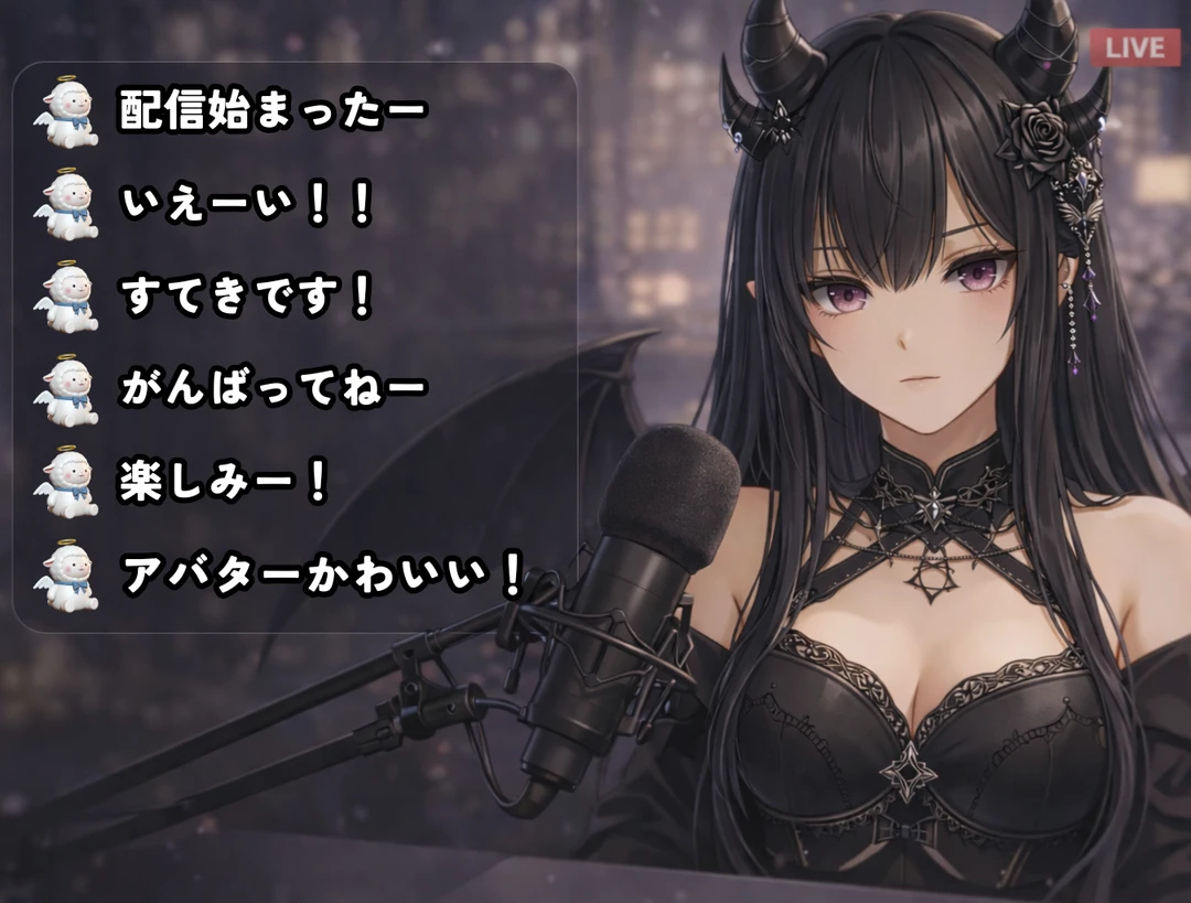 リスナー1:配信始まったー リスナー2:悪魔のアバターすごくかわいい!