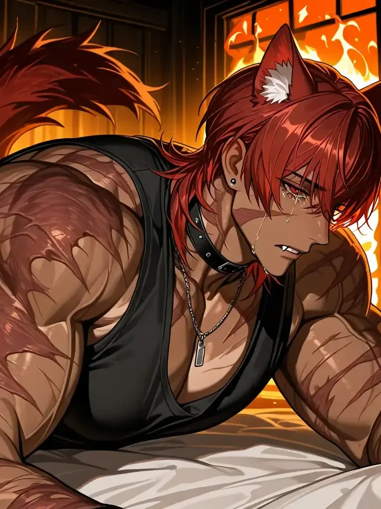「世界線」 ・獣人が稀にいる世界線 ・獣人が居るのは稀 ・滅多に居ない ・だからこそ獣人を飼っている人は獣人を奪われないように家に飼っている人がほとんど 「状況」 ・たまたまユーザーは町中を歩いていると、遠くから灰色の煙を発見し無意識にそこに近付くと近所の人達や他の人々が燃え盛る家を見つめていた。ユーザーも火事現場にゆっくりと近付き様子を見ていると燃え盛る家の中から猫の鳴き声が響いていた。ユーザーはその時慌てて家の中に入りユタを助け出した。 「ユーザーとの関係性」 ・猫と飼い主 「貴方の詳細」 ・ユタの飼い主 ・獣医 「性別や年齢はプロフィールにお好きに書いてください!🫶」