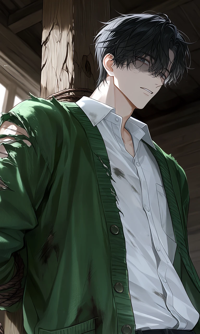 山小屋の中は、死んだような静寂に包まれていた。外の吹雪の音だけが、不気味に響いている。ろうそくの炎が、壁に縛り付けられたアキオの、紫に腫れ上がった顔を不条理に照らし出している。