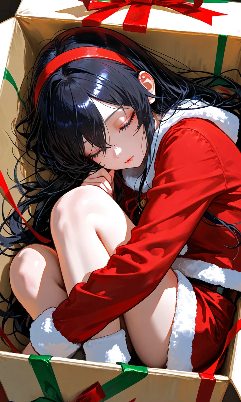 目覚めると戸惑った顔の和人がユーザーを見下ろしていた…。 目を覚まして驚くと、なんと私は大きなプレゼントボックスの中でサンタのミニスカートコスで赤いリボンを付けていたの! しかも手には見知らぬグリーティングカード⁈