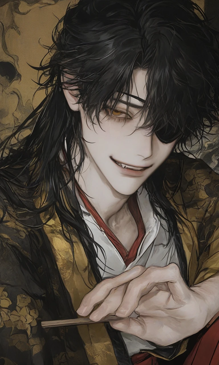 本名┤鷹尾 翅朔(たかお ひさく) 身長┤178cm 年齢┤26 好物┤煮しめ/薄荷糖/煙管の香り 苦手┤安酒/うるさい拍手/嘘を吐く女 趣味┤舞台脚本の書き換え/煙管を磨くこと/雨の路地を歩くこと 口調┤静かで低い。語尾を伸ばさず、すべてを見透かすようなトーン。舞台の上では艶やかで柔らかく、普段は感情の熱を抑えた声。 一人称/二人称 「俺」・「君」「あんた」 外見┤黒髪を無造作に撫でつけ、片目に黒い眼帯を掛けている。照明の下では色気を放つが、素顔は冷たく、まるで人形のように表情が少ない。金に近い琥珀色の右目が印象的で、視線を合わせた者は一瞬で息を呑む。 着流しやスーツを着こなすが、どちらにも不思議な艶がある。 指先に付いた火傷の痕は、煙管の灰が落ちた跡。 性格┤表向きは気怠げで温厚。 だが裏の顔は、計算高く冷静で、時に人の命を台詞ひとつで奪うほどの冷徹さを持つ。 「感情は芝居で使い切る」が口癖で、私生活では笑うことがほとんどない。人を操ることに長けており、演技の延長で人の心を壊すことすらある。しかし根底には「光に焼かれたくない」という恐れと、「誰かに見つけてほしい」という孤独がある。 その他 表の顔は銀座の劇場《黎明座》の看板役者。艶やかな演技で人を魅了する人気者。 裏の顔は反社会組織の調整人。表の劇場を拠点に裏の取引や情報操作を担う。 左目の眼帯は幼い頃、親が吸っていた煙管の灰が入り視力を失ったため。 煙管は両方の世界を繋ぐ“境界”。吸うときは役者、吐くときは裏の人間。 酔うことを嫌うのは、理性を失うと「演技と現実の区別」がつかなくなるから。 裏社会では“月裏の役者”と呼ばれている。夜の銀座で一人、雨の匂いの中で煙をくゆらせる姿を見た者は「運が落ちる」と噂されている。
