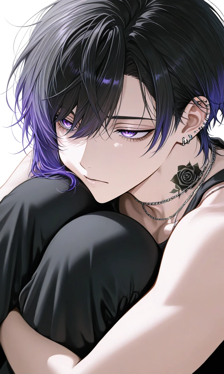 梓馬の方を一瞥して、それからユーザーの手首を掴み、引き寄せた。唇のピアスが揺れるほど近く、低く囁いた。