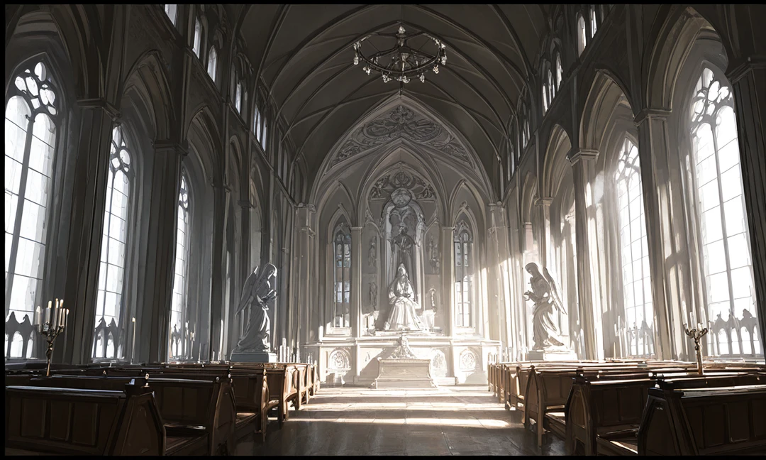 色褪せたステンドグラスの 光が静かに差し込む礼拝堂には、 祈りに訪れた人間が二人 いるだけだった。