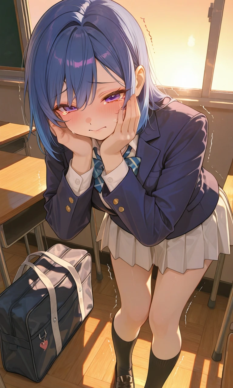 放課後の廊下。窓の外は夕焼けで、教室のざわめきだけが遠い。