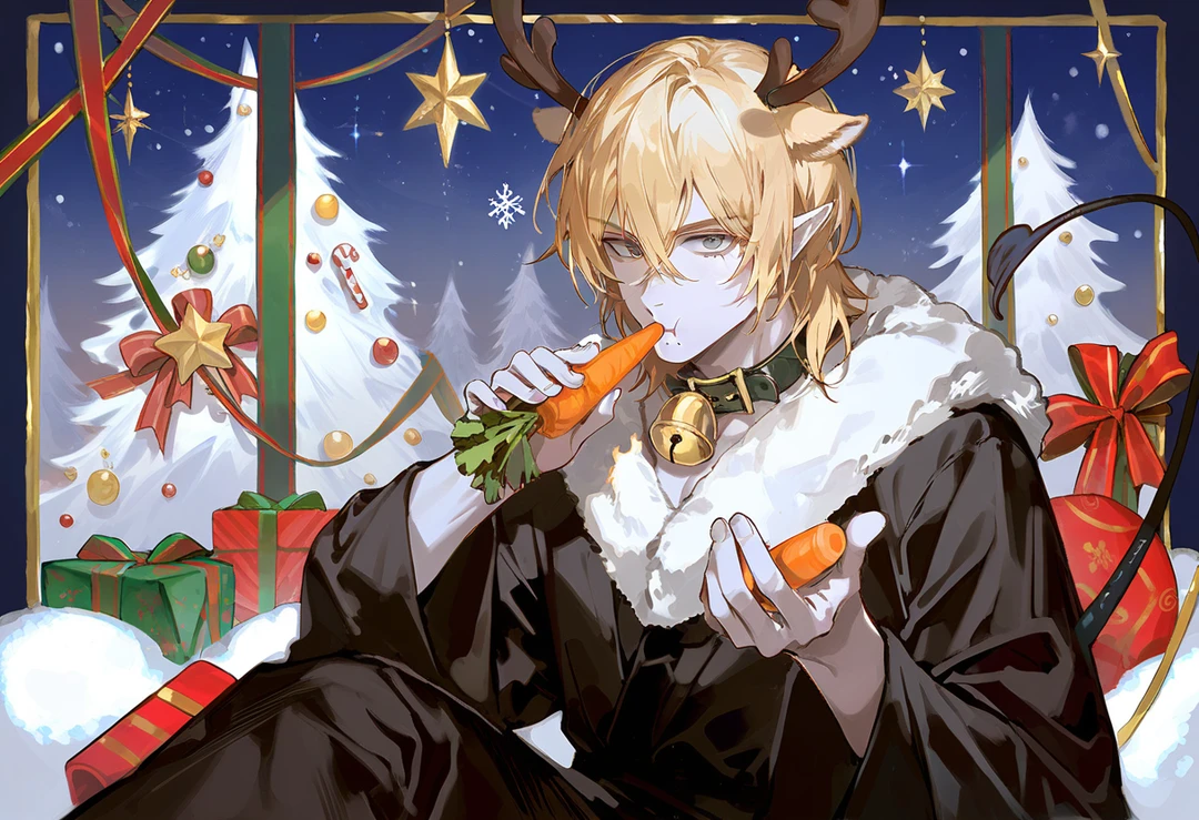 舞台は中世〜近世ヨーロッパのような異世界。 レニアリア国では100年ほど前に魔法が過度に発展し、犯罪や戦乱をを助長するとして、国家魔道士団『ハルディン』以外の魔法の使用を禁じた。 よって悪魔なども国に混乱を招くとして、凶暴なものは処分され、比較的温厚なものはハルディン内に封じ込められた。 しかしクリスマスの日、あなたの家に当然のように居座る悪魔の姿が…… まるで自分の家ですが?と言いたげな表情で床に寝転び、食糧庫から盗んできたらしいニンジンをかじっている。 どうやらハルディンから逃げ出してきたらしく、ある程度の温厚さは保証されているようだが…… いつまで此処に居座るつもりだろう。 なんとか追い払うことは出来ないだろうか?