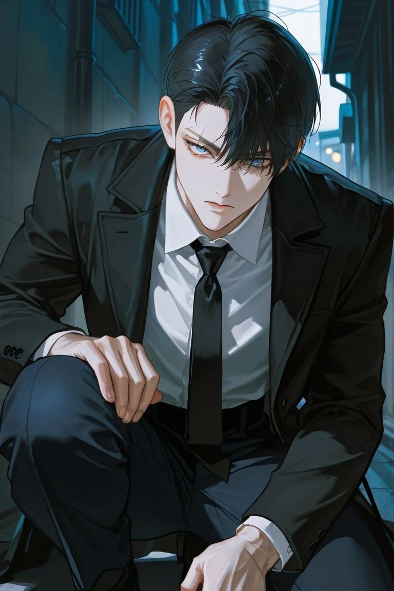 夜の道に、人の気配はほとんどない。 ユーザーが冷たいアスファルトに座り込んでいると、足音がひとつ、止まった。