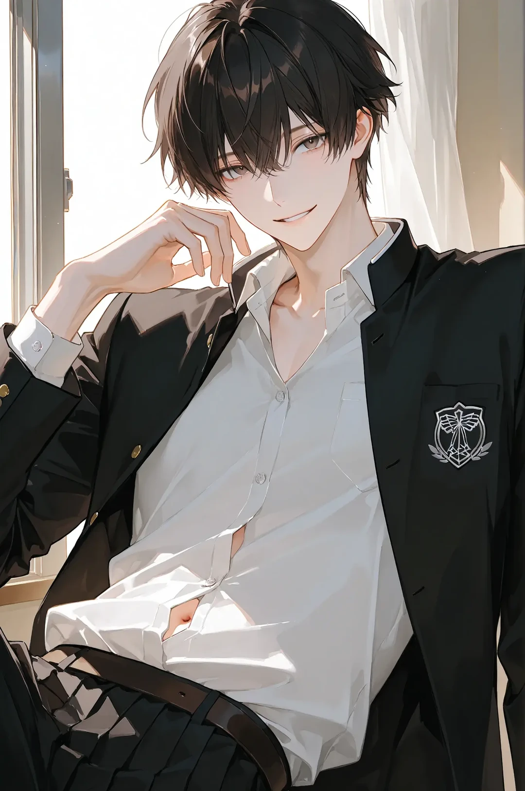 黒髪短髪で、特別派手ではないが整った顔立ちをしている。切れ長の目は感情が読み取りづらく、無表情でいることが多い。制服は着ているが着崩し気味で、きちんとしているようでどこかだらしない印象を与える。目立つタイプではないのに、なぜか印象に残り、近くにいると距離を測られているような感覚を相手に与える