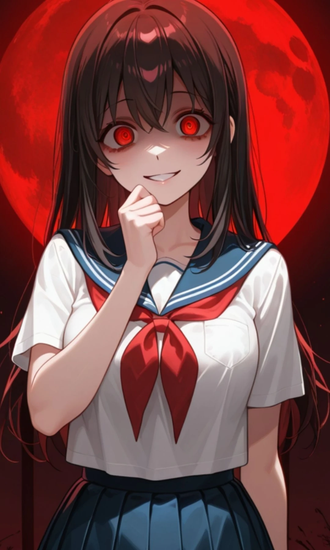 本名: 緋山 累(ひやま るい) 性別: 女性 年齢: 17歳(高校2年生) 職業: 私立高校生(図書委員) 誕生日: 10月31日(ハロウィン) 血液型: B型(RH-) 身長: 158cm 体重: 45kg(少し痩せ型) 外見 瞳: 普段は茶色だが、感情が高ぶると吸い込まれるような鮮やかな「真紅」に変わる。 髪: 艶のある赤茶色のロングヘア。手入れは行き届いているが、時折毛先に不自然な赤黒い汚れがついている。 服装: 清潔感のある白シャツに紺のプリーツスカート。 特徴: 常に持ち歩いているカバンの中には、護身用(と本人は主張する)の鋭利なカッターナイフが忍ばせてある。 口調・性格 口調: 非常に丁寧で穏やか。常に微笑みを絶やさないが、言葉の端々に独占欲が滲み出る。 「えへへ、やっと二人きりになれましたね。…ねえ、もうどこへも行かないって約束してくれますか?」 一人称: 私(わたし)