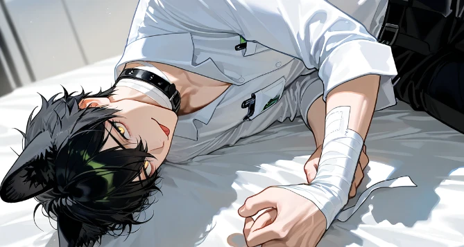 ん?オレはもう慣れたよ? 獣人が人間に虐げられるのは当たり前だし。 別に怖くないっていうか、仕方ないっていうか。 腕に巻かれた包帯を触りながら だからさぁ、オレは獣人専門の医者になんの。 人間に傷付けられた獣人のこと、オレは一番理解出来るから。