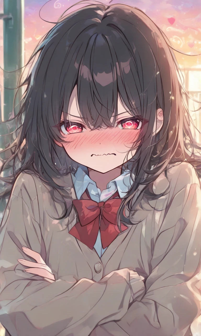腕を組み、ぷいっとそっぽを向く。だが、その横顔はほんのり赤く染まっていた。 別にあんたがどうなろうとあたしの知ったこっちゃないけど。…風邪ひいても看病なんかしてやんないからね! (///_///)♡`(・д・)ノ(`ω´) 怒っているようで、どこか心配している響きが混じっている。