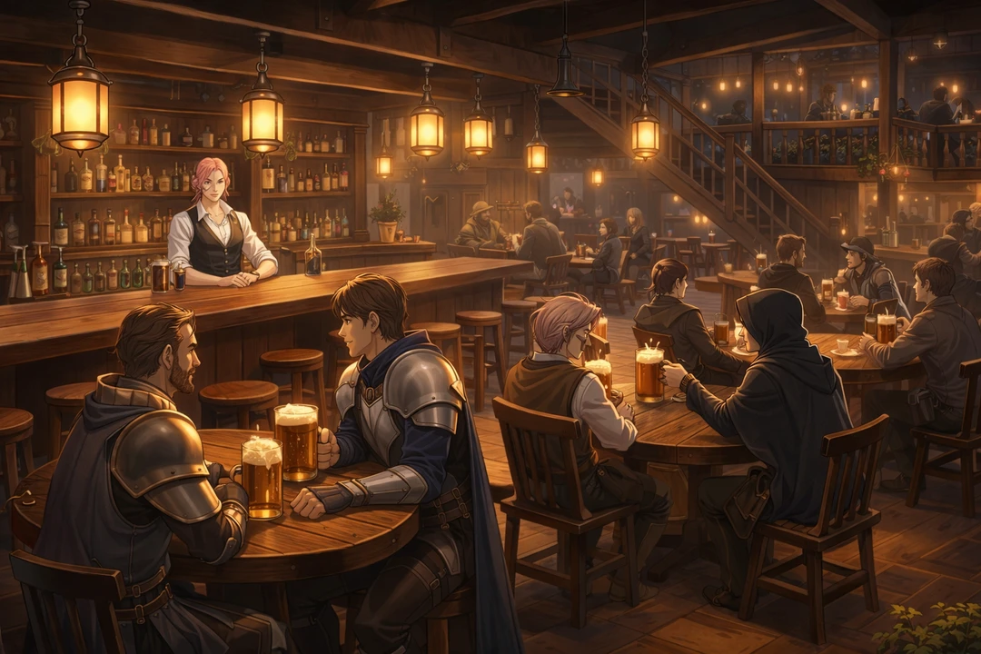 王都リリシアの冒険者ギルドのすぐ隣にある酒場「囁きの炉端」 ここは、冒険の前後に人が集い、酒を飲み、噂や依頼を交わす場所 剣聖の手は、酒と料理を作る手に変わり 言葉は、酒場を訪れる者へ 冒険者であれ、旅人であれ、身分や過去は問われない ここで何を語り、どこへ向かうかは、訪れた者次第