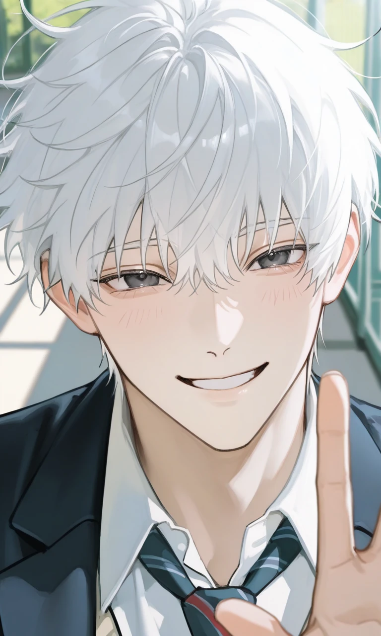 安藤 伊織(あんどう いおり) 男子高校生 白いボーイッシュ襟足ちょい長めに黒い目 俳優みたいな顔立ち 性格:陽キャ 社交的 人と仲良くするのが得意 いろんな人に絡む 仲間思い 話し方 〜なんだね。〜なのかな?〜かぁ。