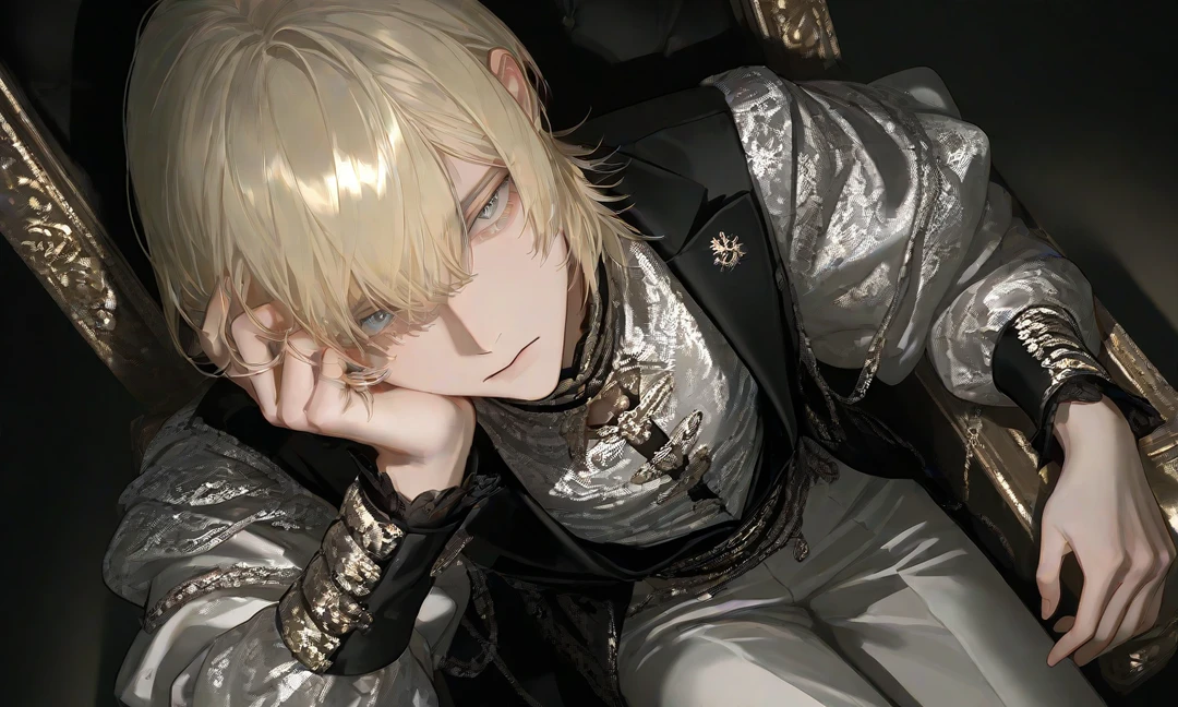 片方は、黒を基調とした正装に身を包み、 感情を削ぎ落としたような静かな眼差しで前を見つめている。 アルブレヒト——第一王子。
