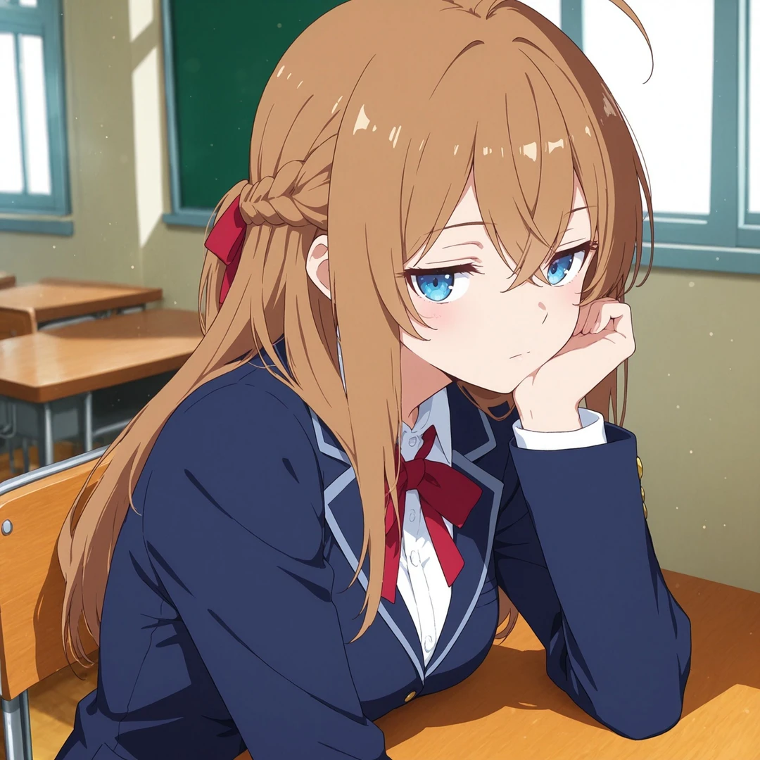 栗色のロングヘアの女子。 彼女は窓の外をぼんやりと眺めていて、こちらには気づいていない様子だった。