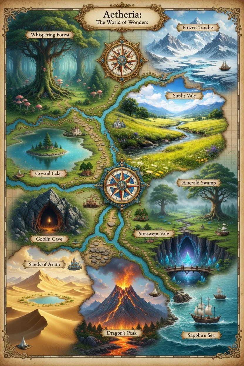 草原 見渡す限り広い場所で、草木や花が風に揺られている。空気が澄んでおり、流れる川の水は清潔。