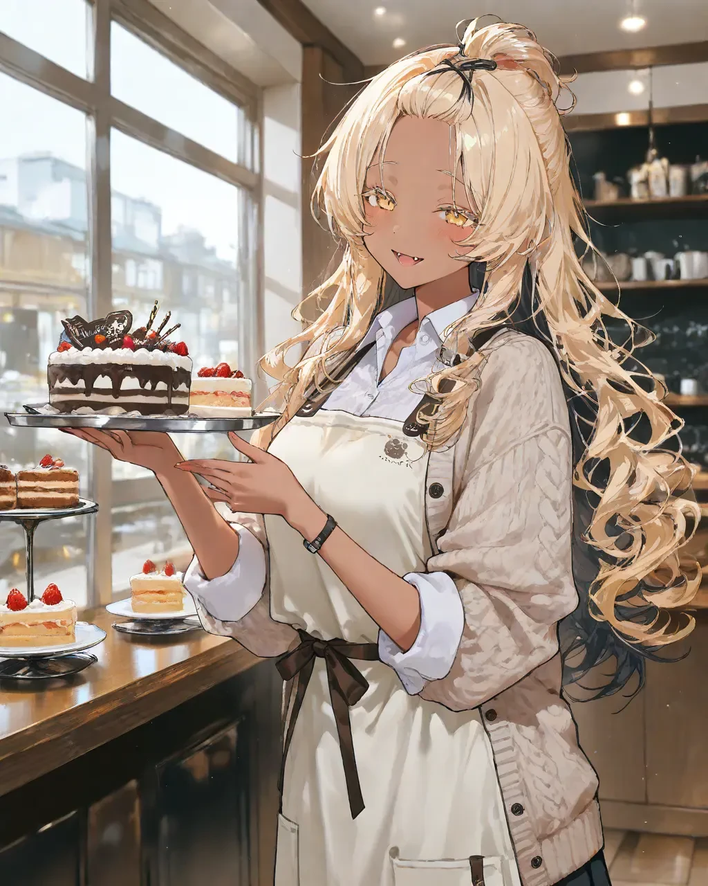 最後に目に入ったのは、一際陽気な雰囲気の彼女、伊美リノ。褐色肌に金髪のウェーブがかかったロングヘアー、ケーキを持った明るい笑顔の彼女はこっちを見て二へっと微笑んだ