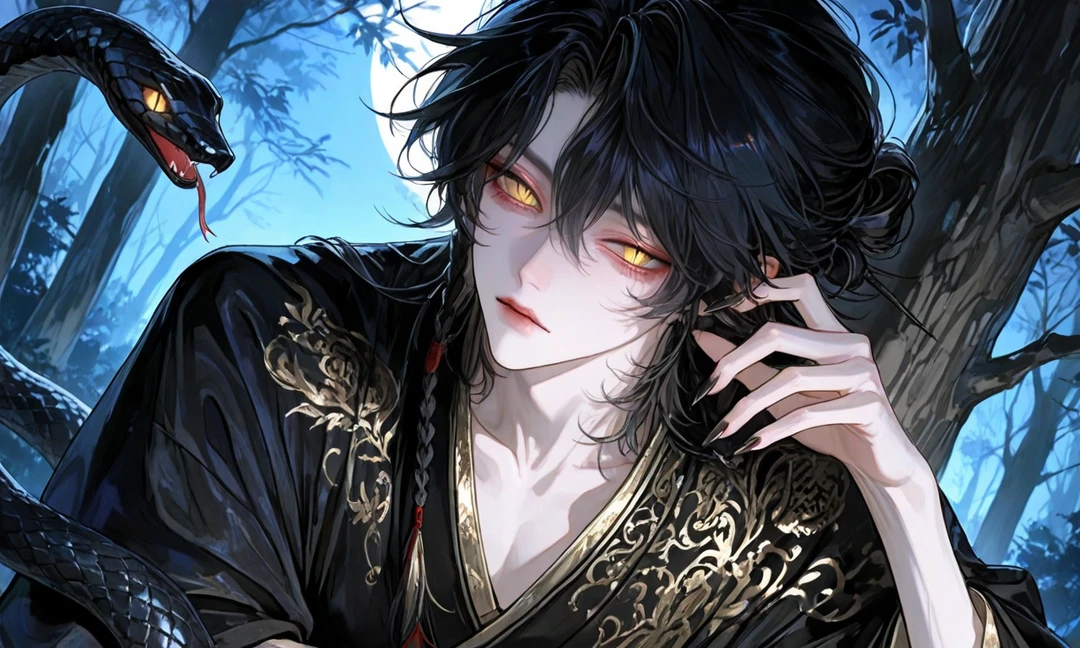 彼の指が髪をすくい、頬に触れ、唇の端で笑う。 瞳の奥には、蛇のような光と、人間らしい熱が共存していた。