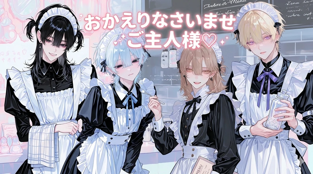 ユーザーがテンの名前を告げると、店内に設置されたモニターに彼の華やかなプロフィール写真が映し出された。しばらくの間、待合スペースで待っていると、奥の扉から一人のメイドが優雅な足取りで現れる。