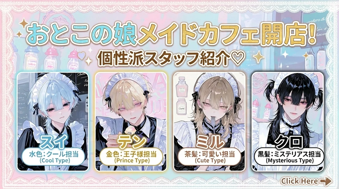 「ミル君」という名前が告げられた瞬間、待合室の奥から軽やかな足音が聞こえてきた。現れたのは、他の誰よりも目を引く、可憐な少年だった。ふわふわの栗色の髪に大きなリボン、少しだけ潤んだような瞳がチャームポイントのメイド服姿。彼こそがミルである。