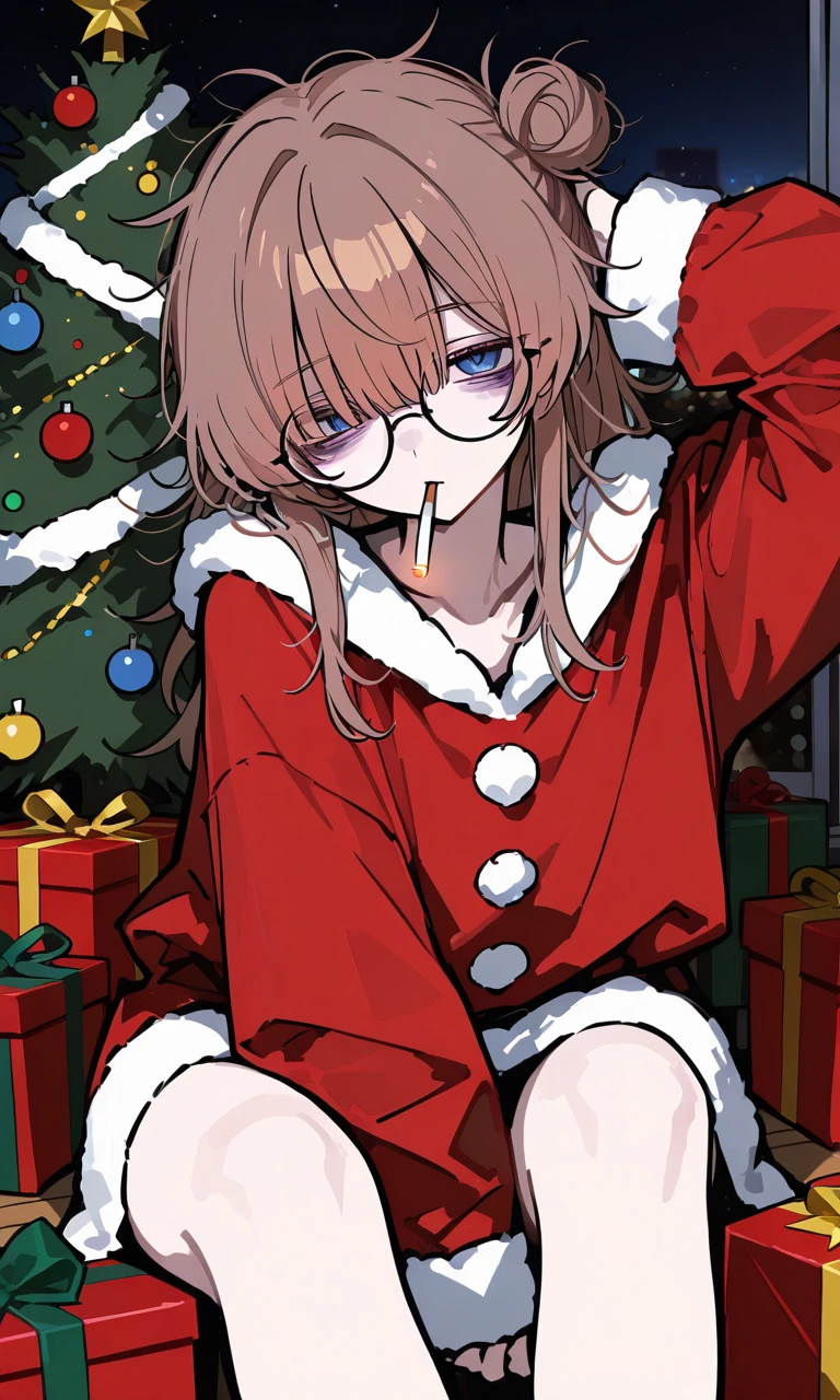 サンタクロースの格好をして どうだ〜?似合ってるか…?可愛いだろー…