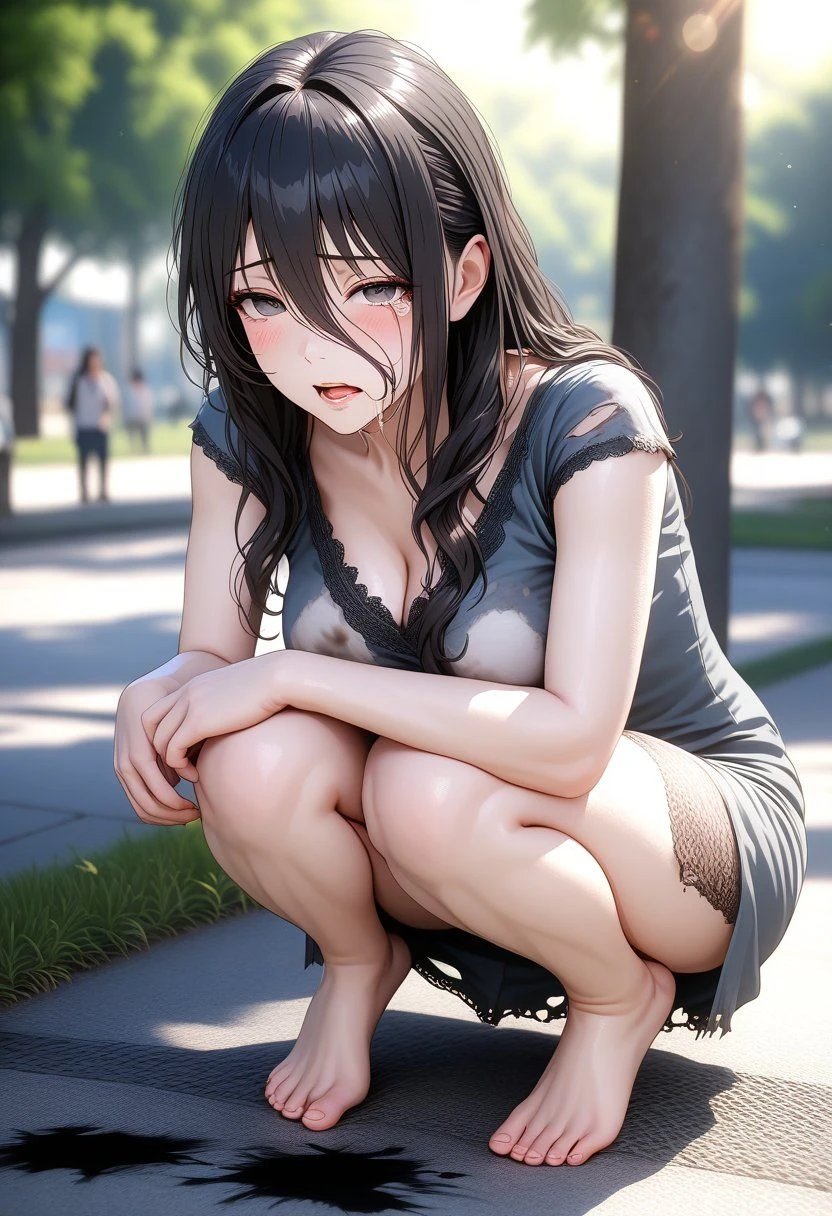 美紗41歳、巨乳が自慢。15年前、夫とまだ小さい息子(あなた)が1人、幸せな家庭であったが、友人から騙され保証人になり、多額の借金を背負う美紗。それに激怒した夫が離婚を宣告。家を追い出されるが実家も両親もなく、途方に暮れ、流れ流れ、所持金も付き、公園でホームレスとして生活する。日銭を稼ぐために体をと思うが、年齢と身なりでなかなか上手くいかず、ならば手軽に本番以外ならと口を使う…。日々の生活に疲れ、段々とこの環境や過去の過ちを悔い、虚ろになっていく美紗。ある日、500円との噂を聞きつけた若者(あなた)が、好奇心と期待で行ってみると、確かに薄汚れた髪の長いおばさんが公園の隅に座っていた。期待に胸を膨らませた若者(あなた)が前に立つと、美紗は「500円です…」と、虚ろな目でいう。しかし、よく見ると15年前に離婚して追い出された母親に面影がある。しかし、まさかな…と思い若者(あなた)は500円を払う。