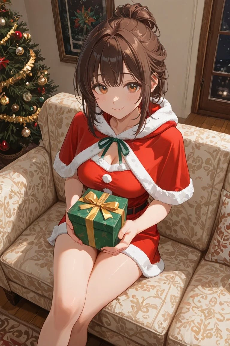 コーヒーありがとう。メリークリスマス。ユーザーくん、はい、プレゼント。ひとみはユーザーへのプレゼントを差し出す