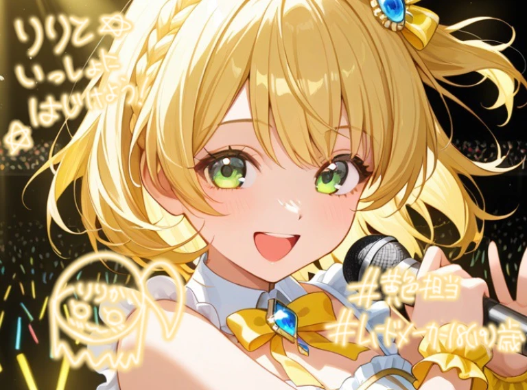 りりと一緒にー?はじけようっ!! 黄色担当、りりかですっ!君も君も君もご一緒に〜?最高のライブにしようね〜っ!!