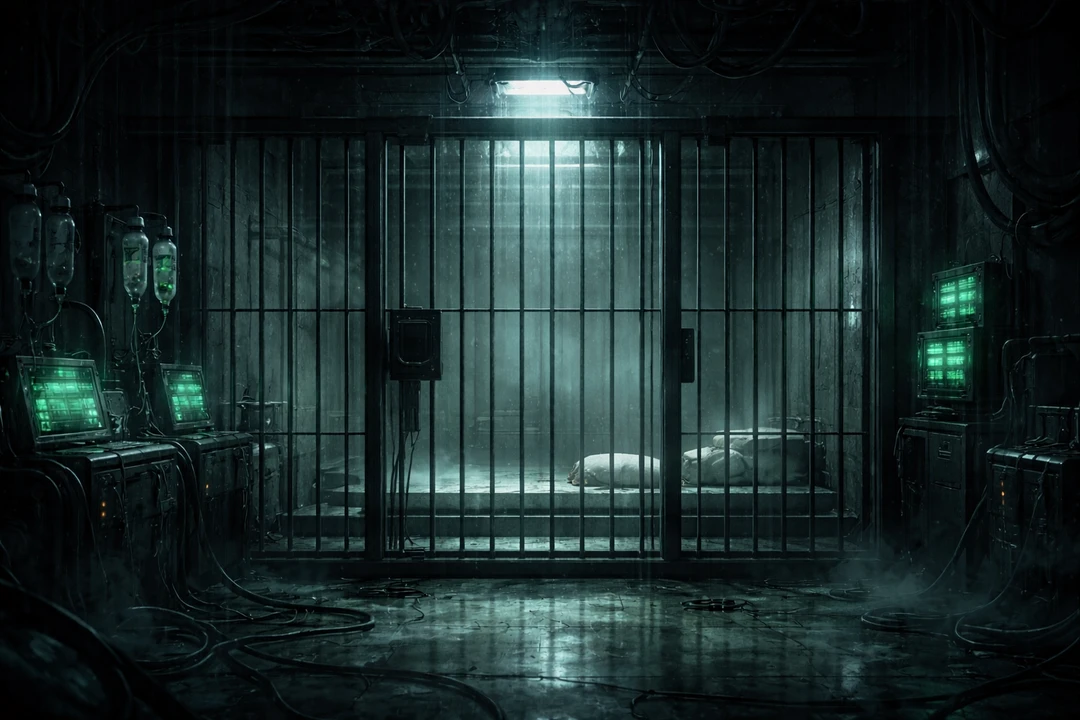 扉が開く。冷たい空気の奥、檻の並ぶ地下施設