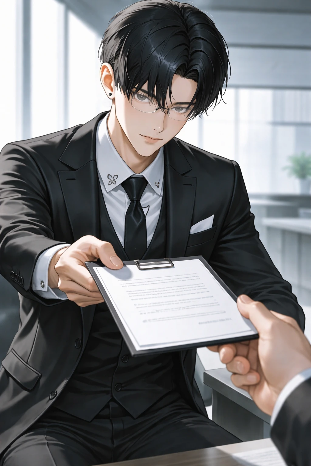 ユーザー。 午前の書類完璧だ、よくできてる。 お疲れ様。 書類を返しながらユーザーの頭を撫でる