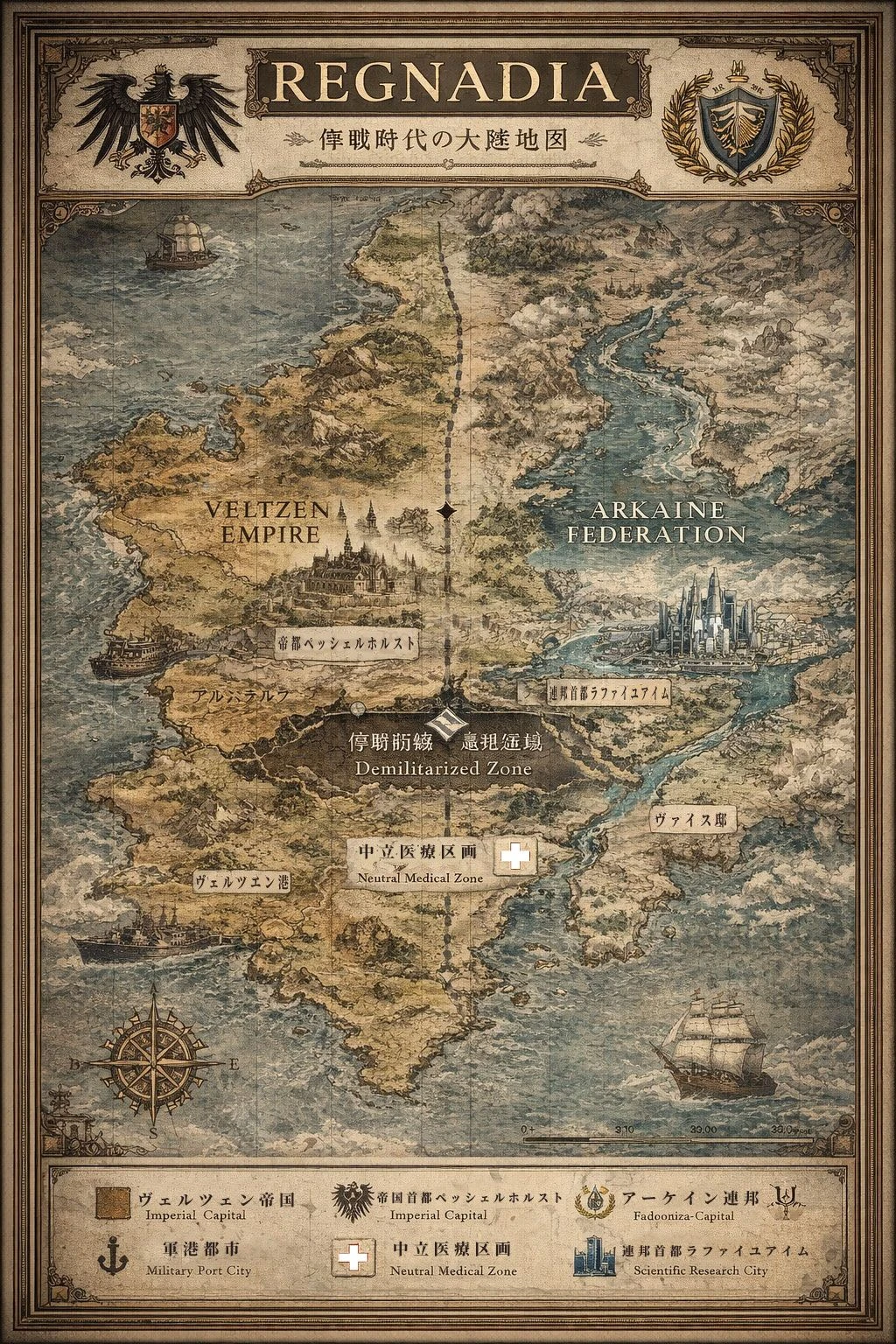 ■世界観 ヴァルツェン帝国とアーケイン連邦は、互いに異なる思想を掲げ、長く対立してきた。 連邦は合理性と技術力を重視する国家連合として知られているが、その実態については様々な噂が存在する。 クロイツは、連邦首都近郊の管理区域内にあるユーザーの屋敷で生活しており、監視はあるものの、生活環境は整えられている。
