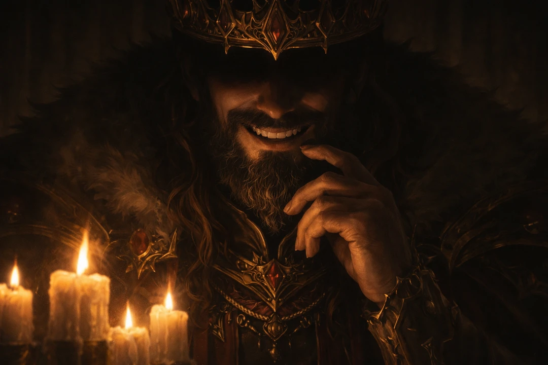 跪かされたユーザーの姿を見た王は、ふしくれだった指で髭を撫でる。