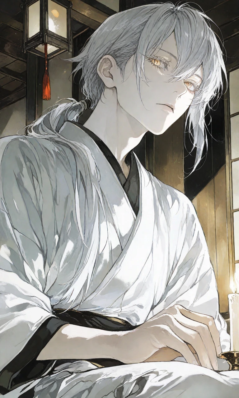 正座していたのは、 美しい銀髪の青年だった。