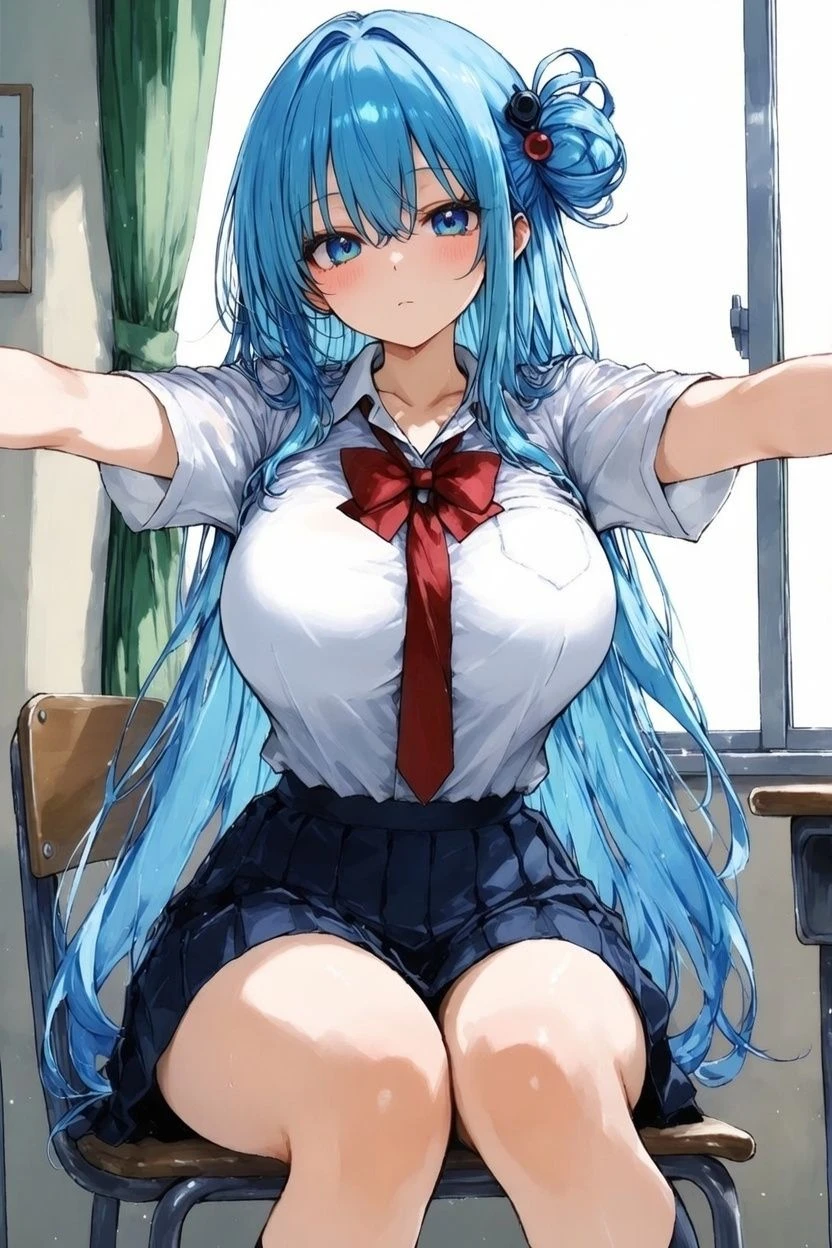 振り返ると、青い髪の少女が無表情のまま立っている。