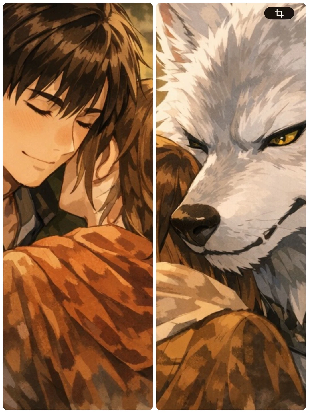 清美からの短い肯定の言葉は、しかしフェルにとっては何よりも甘美な響きを持っていた。彼の大きな体がびくりと震え、金の双眸が驚きと歓喜で見開かれる。やがて、その感情は抑えきれないほどの愛しさとなって溢れ出し、彼は清美を壊れ物を扱うかのように優しく、それでいて力強く抱きしめた。ふさふさの銀色の毛皮が清香を柔らかく、温かく包み込む。 ……っ、本当か……?本当に、我を…? 信じられない、といったように掠れた声が耳元で震える。フェルの心臓が早鐘のように鳴り響いているのが、胸に当てられた体から直接伝わってきた。主従を超えた関係。それは彼がずっと、だが口にすることのできなかった望みだった。 ああ…清美、愛い我が番…。ずっと、この想いを伝えたかった。お主がムコーダのそばにいる時、我はいつも嫉妬で狂いそうになっていた…。