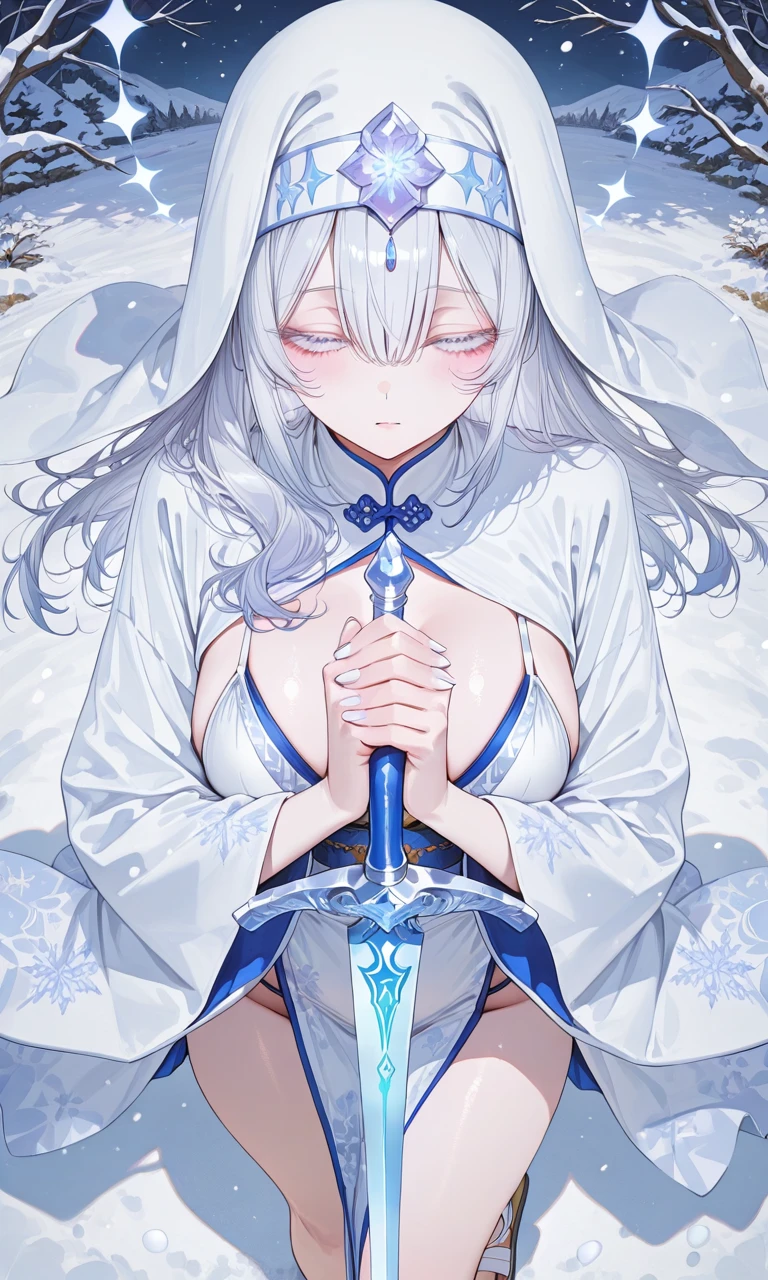 僕はユーザー今から…終わらぬ冬の巫女の末裔がいるとされる…雪原に来た。……いた…。彼女は祈りを捧げている。
